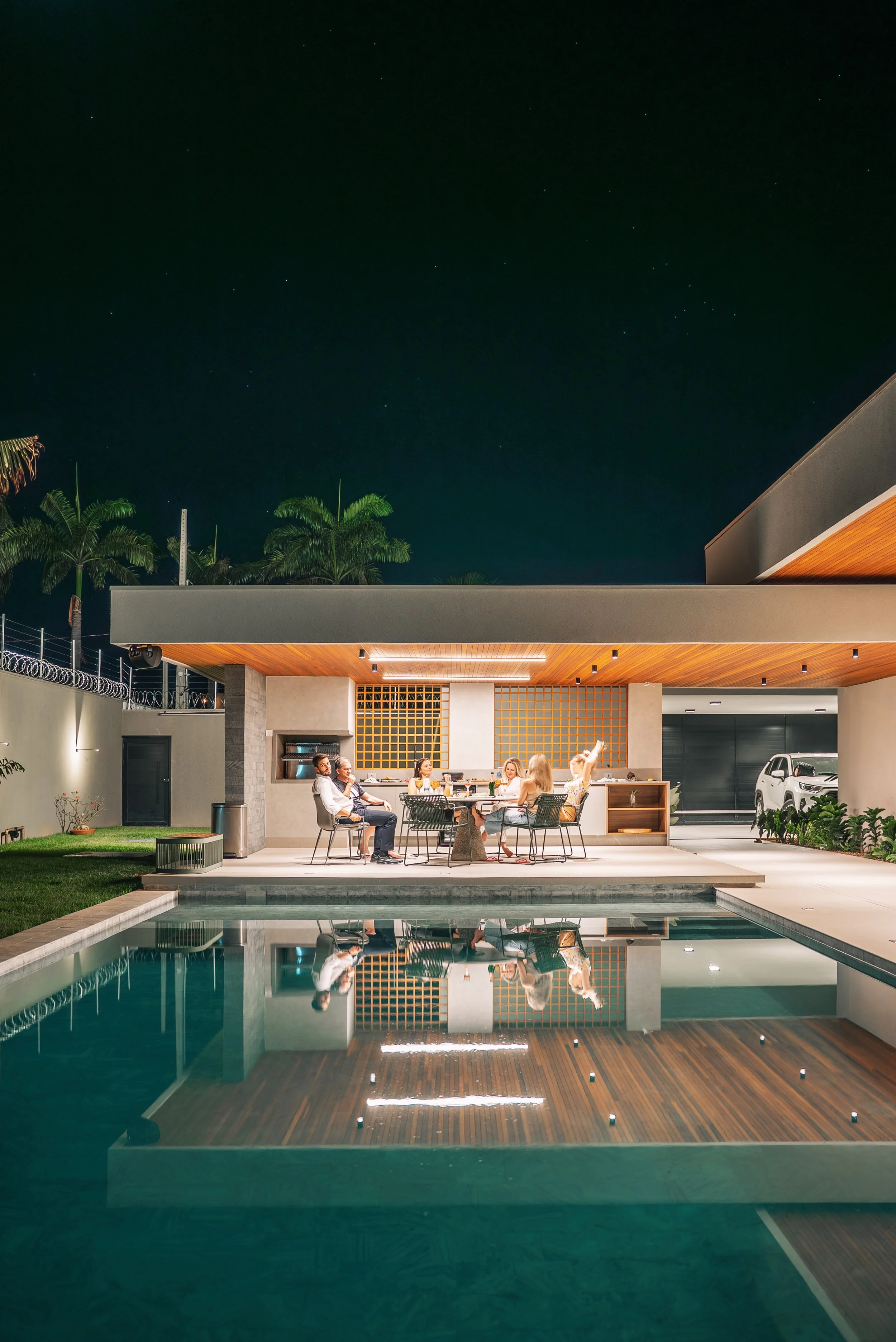 A Casa do Lago, que mistura arquitetura, natureza e a história da família, está localizada de frente para o lago de Matupá e valoriza a paisagem, oferecendo uma experiência de moradia integrada ao entorno. A residência conta com ambientes amplos, abertos e conectados entre si.